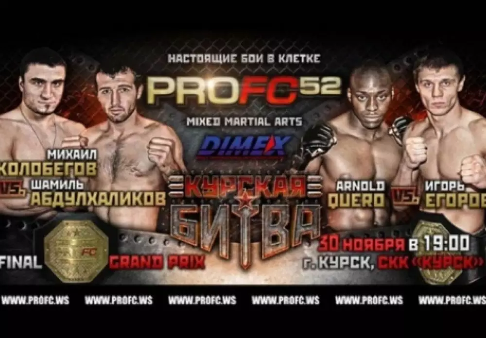 Казахстанец выступит в весовой категории до 75 килограммов в рамках Under card. Его соперником станет россиянин Евгений Богатырев. Добавим, что главным боем турнира станет поединок за пояс чемпиона Grand Prix PROFC в весе до 84 килограммов между россиянами Михаилом Колобеговым и Шамилем Абдулхаликовым.