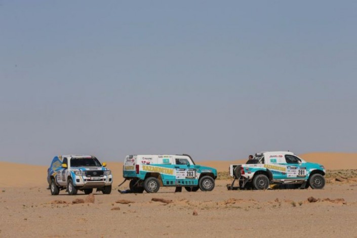 Восьмое время на шестом этапе показал казахстанский экипаж команды Mobilex Racing Юрий Сазонов - Алексей Кузьмич, выступающие на Hummer. Они уступили победителям пять минут и 19 секунд. А еще один внедорожник команды Mobilex Racing, которым управляют Ерден Шагиров и Арслан Сахимов, финишировал с 15-м временем.