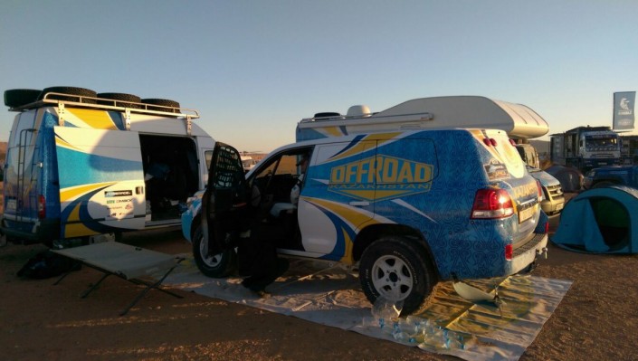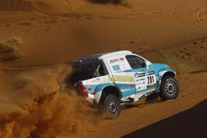 Седьмое время на втором этапе показал казахстанский экипаж Каната Шагирова и Виталия Евтехова (Toyota), также выступающий за команду Mobilex Racing. Они уступили первому месту 23 минуты и 28 секунд. А их партнеры по команде Ерден Шагиров - Арслан Сахимов (Hummer) показали 26-й результат, преодолев дистанцию второго этапа за час, 49 минут и 44 секунды. В зачете внедорожников Шагиров - Евтехов занимают пятое место, а в "абсолюте" - седьмое. Шагиров - Сахимов в своей группе Т1 - 18-е, а в "абсолюте" - 25-е.