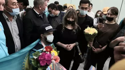 А на выходе из терминала Давида ждали его мама, сестра, друзья из родного Атбасара, делегация из Акмолинской области и журналисты.