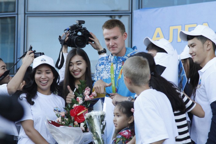 Олимпийский чемпион Дмитрий Баландин, прилетевший из Рио в Алматы, рассказал о том, что осознание победы пришло к нему не сразу, передает корреспондент Tengrinews.kz. Торжественная встреча спортсмена прошла в аэропорту Алматы.