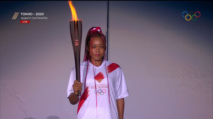 Олимпийский огонь зажгла знаменитая теннисистка Наоми Осака.