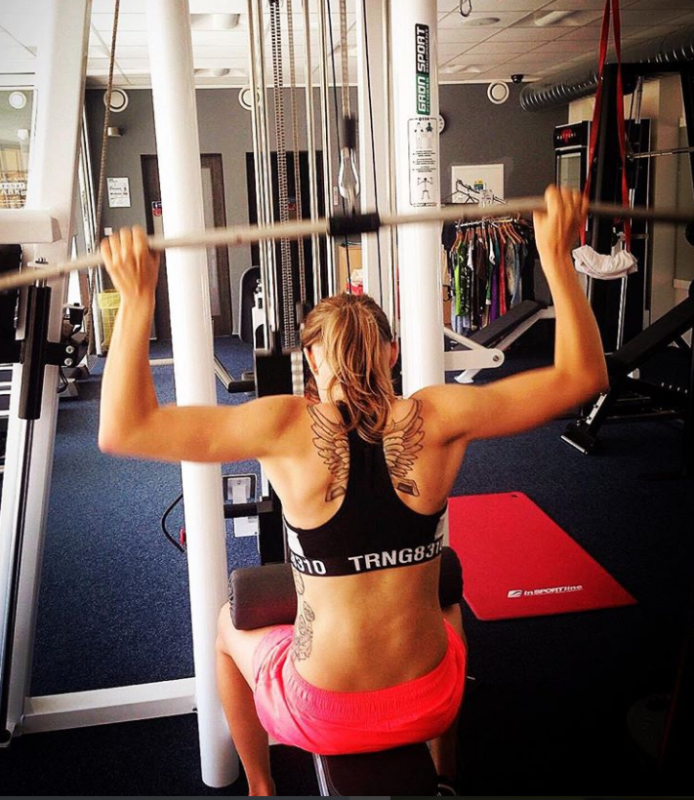 У девушки имеются две татуировки на теле. Первая - пистолеты с крыльями на спине, вторая - "ловец снов".