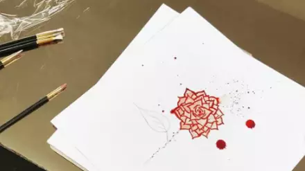 "В связи с огромным количеством работы, переездом и небольшими проблемами со здоровьем творческий процесс затянулся. Сегодня я наконец-то закончила картину для Эндрю. Она определенно особенная. Во-первых, потому что это мой первый кровавый арт. До этого на моих картинах были только капли моей крови, а это рисунок, выполненный моей собственной кровью. Эта картина была со мной в Вегасе, и я рисовала ее там, когда нас закрывали в комнате на карантин перед боем", - подписала она свою работу.