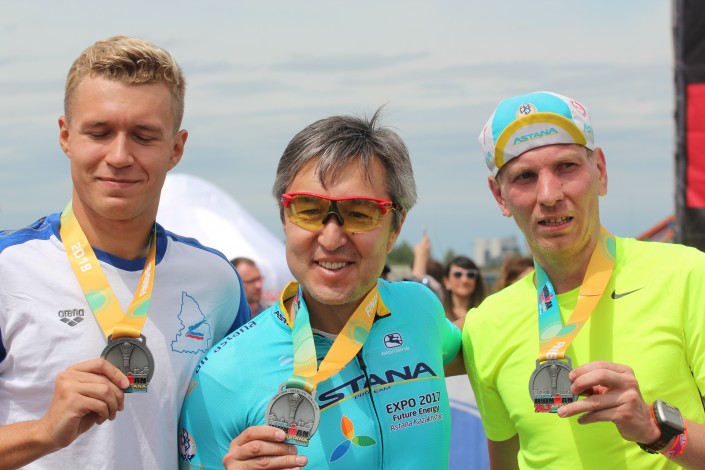 Серик Сапиев тоже финишировал одним из первых. Победитель Олимпиады и депутат признался, что преодолеть всю дистанцию было достаточно сложно.