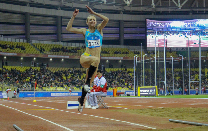 Во второй попытке майор Ольга Рыпакова, которая выступает за команду ЦСКА МО РК, прыгнула на 14,19 метра и пополнила копилку сборной Казахстана золотой медалью.