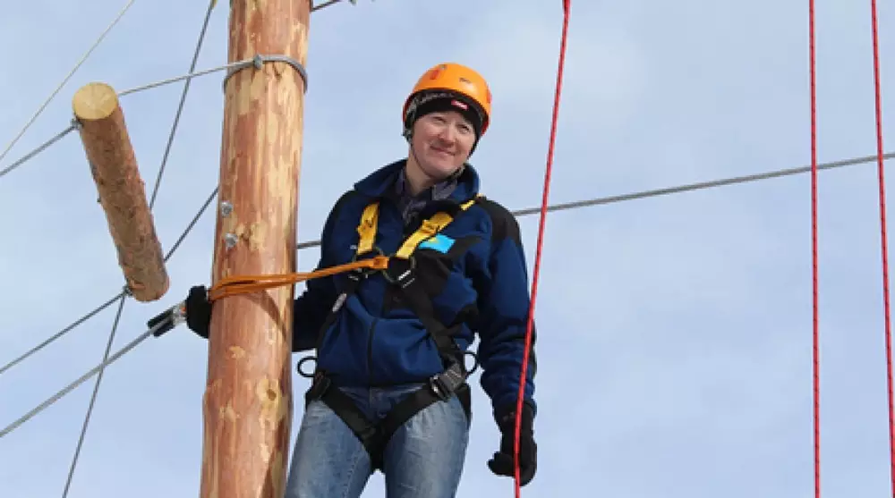 Задача у посетителей веревочного парка на первый взгляд простая - пройти от начальной до конечной станции по полосе препятствий из веревок и деревянных брусьев. Затем человек съезжает вниз по так называемой "тарзанке" Zip-line. Но на деле эта задача достаточно трудоемкая и увлекательная.