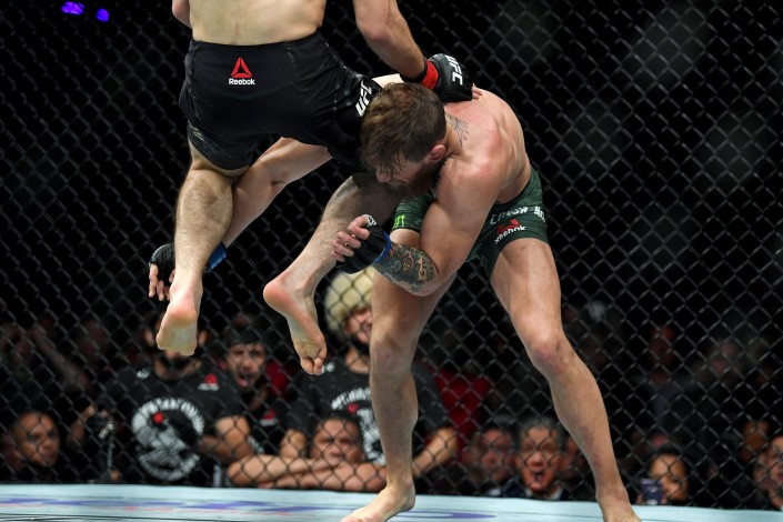 В третьем раунде МакГрегор несколько выровнял положение к октагоне, снизив преимущество Хабиба. Но в четвертом Нурмагомедову удалось провести болевой прием и заставить Конора сдаться.