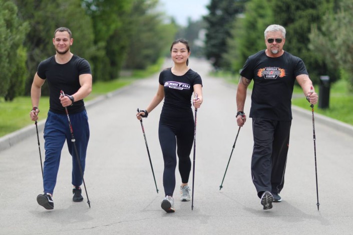 Северную ходьбу в Казахстан в 2014 году привез российский тренер Максим Прощенко, который открыл первую в Центральной Азии профессиональную школу скандинавской ходьбы "Евразия". С тех пор через школу прошли тысячи учеников, и с каждым днем их становится все больше.