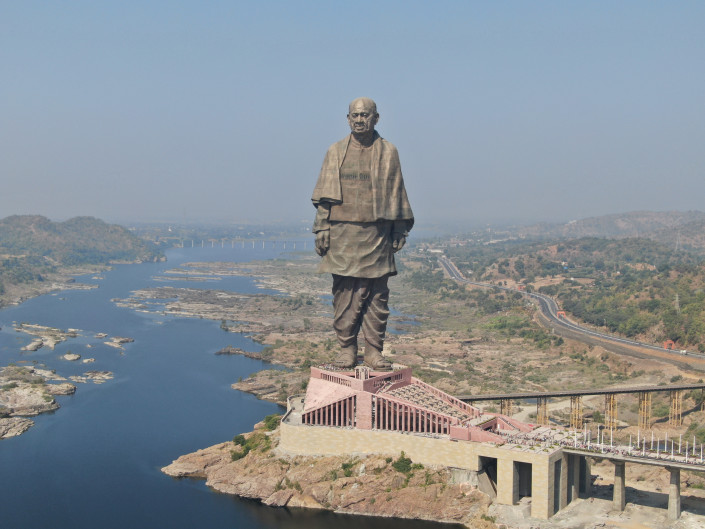 Статуя Единства, Раджпипла, Индия. На сегодняшний день это самая высокая статуя в мире. Ее высота превышает 182 метра, а вместе с постаментом получается все 240. Памятник был установлен в октябре 2018 года в честь 134-й годовщины рождения Валлабхаи Пателя, который был заместителем премьер-министра Индии и одним из лидеров движения за независимость Индии. Согласно официальным данным, над реализацией проекта трудились 250 инженеров и порядка 3400 рабочих. Стоимость строительства составила порядка 430 миллионов долларов. Статуя установлена на берегу реки Нармада в 30 километрах от города Раджпипла в штате Гуджарат. Возведение статуи считают личным проектом премьер-министра Нарендры Моди, который дал старт строительству памятника 31 октября 2013 года, когда занимал пост главного министра этого штата.