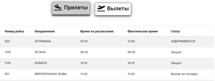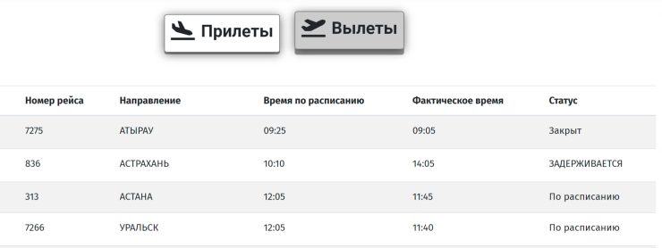 Фото: онлайн-табло аэропорта Актау