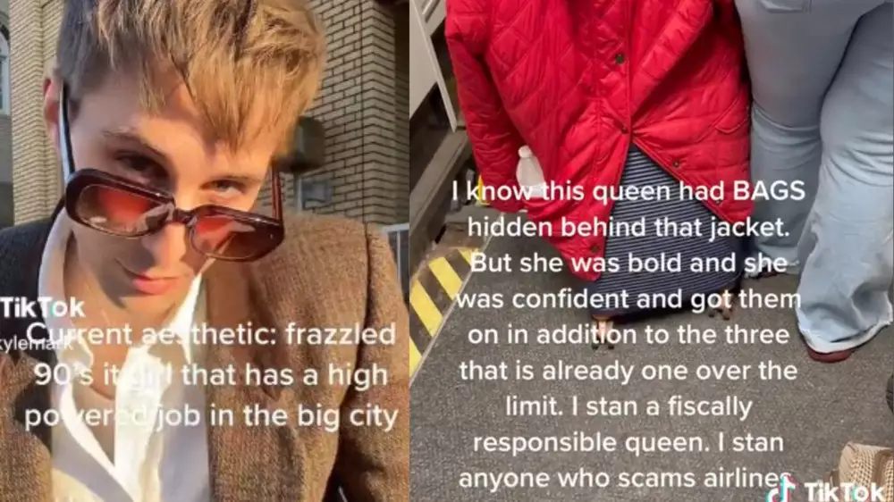 "Я знаю, что эта королева прячет чемодан за курткой. Но она смелая, ведь она уверена в себе. Добавила его к тем трем сумкам, которые уже везет собой, чем превысила лимит.