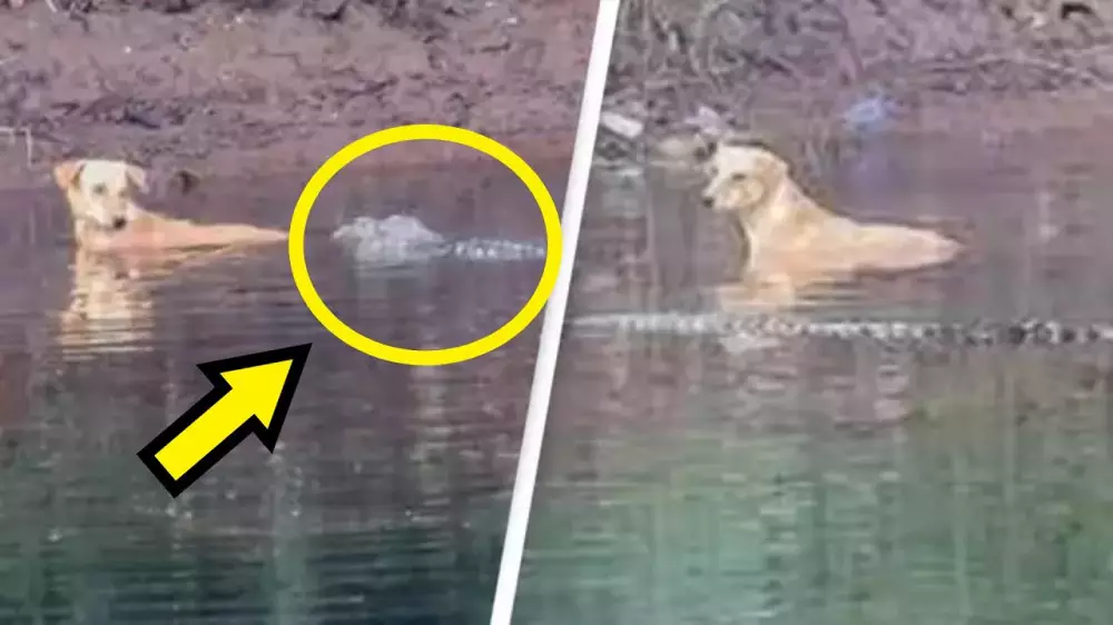 Три крокодила увидели пса и начали к нему приближаться. Примечательно, но вместо того, чтобы разорвать животное, хищники просто оттолкнули его в более безопасное место и фактически сопроводили друга человека к участку на берегу реки, где одичавшая стая не могла ему угрожать.