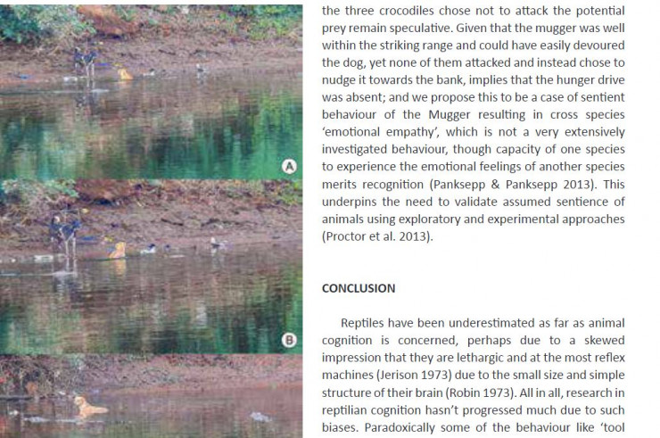 "Мы считаем, что это случай умственного поведения крокодила, которое приводит к межвидовой "эмоциональной эмпатии", которая не является очень широко изученным поведением, хотя способность одного вида испытывать эмоциональные чувства другого вида заслуживает признания. Странный случай собаки, "спасенной" группой крокодилов, о которой здесь рассказывается, кажется, скорее, состраданием, чем альтруистическим поведением. Однако такие умственные способности рептилий мало исследованы", - отмечают ученые.