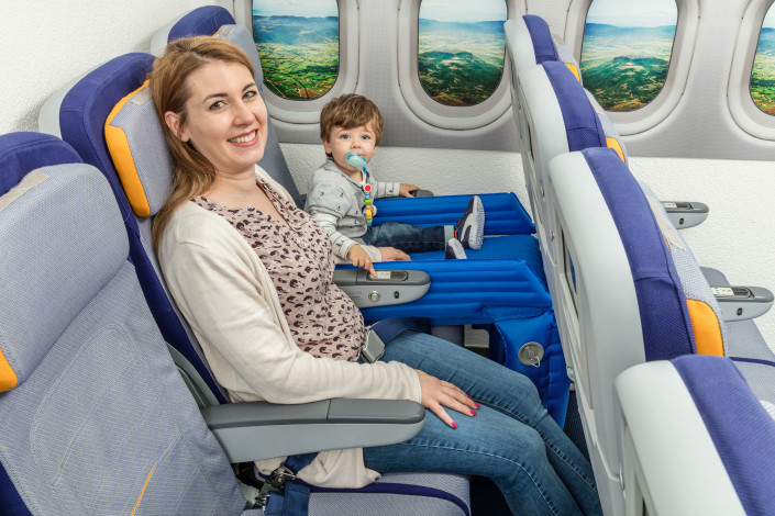 3. Немецкая компания Aircraft Innovations предлагает внедрить специальные надувные удлинители поверх обычного кресла. Они сделают сиденье комфортным для полета детей, у которых теперь ноги не будут свисать. Удлинители сидений уже существуют, но не в каждой авиакомпании.