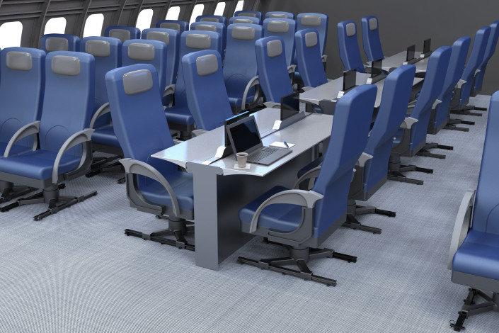 9. Представлена и идея сборного интерьера салона на борту, в котором можно установить все: от спа до ресторанов, а после разобрать.
