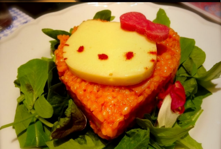 В меню есть томатно-кремовое ризотто с моцареллой в форме Hello Kitty.