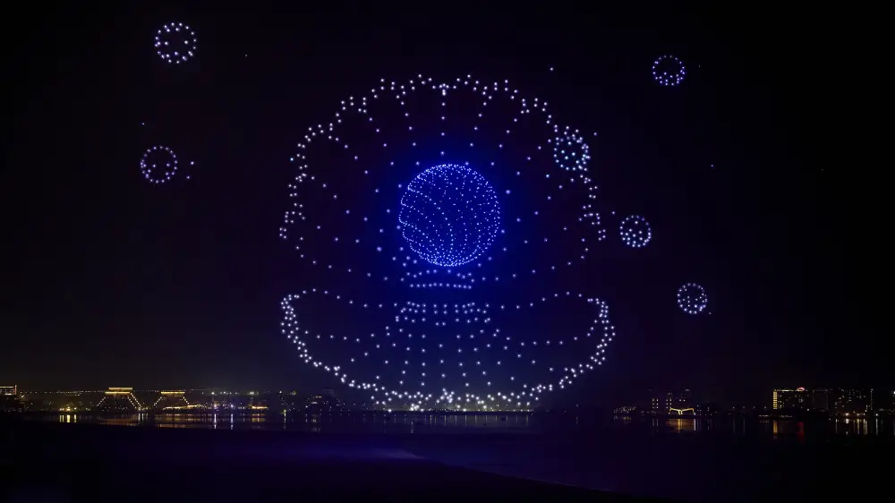 Для создания грандиозных визуальных эффектов было задействовано 10 тысяч дронов.