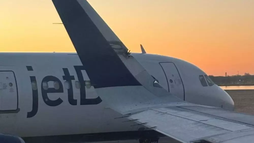"Левое крыло самолета Airbus A321neo рейса 777 авиакомпании JetBlue ударилось о правый горизонтальный стабилизатор самолета Airbus A321 рейса 551 авиакомпании JetBlue около 6:40 утра по местному времени в четверг, 8 февраля, во время посадки на противообледенительную площадку в бостонском международном аэропорту Логан", – заявило Федеральное агентство гражданской авиации США.