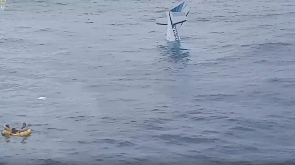 Прибывшие на место сотрудники экстренных служб заметили в океане двух мужчин, один из них находился в воде, а второй на надувном плоту, который медленно уходил под воду. Рядом с ними тонул и самолет – на поверхности остался только его хвост.