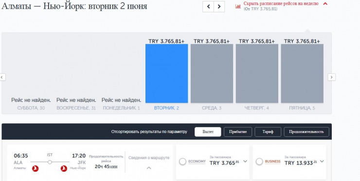 Со 2 июня из Алматы, с пересадкой в Стамбуле, Turkish Airlines предлагает рейсы в Нью-Йорк, Амстердам, Лондон.