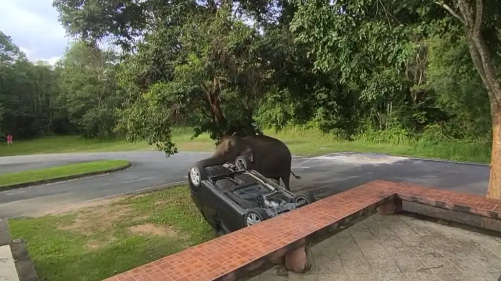 По словам сотрудников парка, группу слонов привлек запах пищи, приготовленной людьми. Не найдя источник еды, животные стали беспокойными и начали исследовать припаркованную машину.