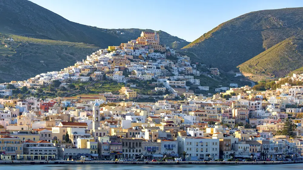 Главный город острова — Эрмуполи — известен своей неоклассической архитектурой и пастельными фасадами, которые больше напоминают юг Италии, чем классические греческие курорты.