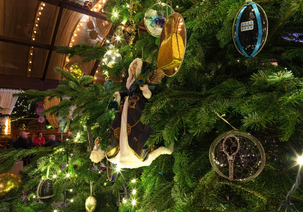 Имеются на елке и съедобные украшения. Дизайнер разместила на дереве шоколадных павлинов, созданных с помощью 3D-печати. Помимо этого, елку украшают самые дорогие в мире Щелкунчики, украшенные сапфирами и алмазами, стоимость которых достигает 120 000 евро.