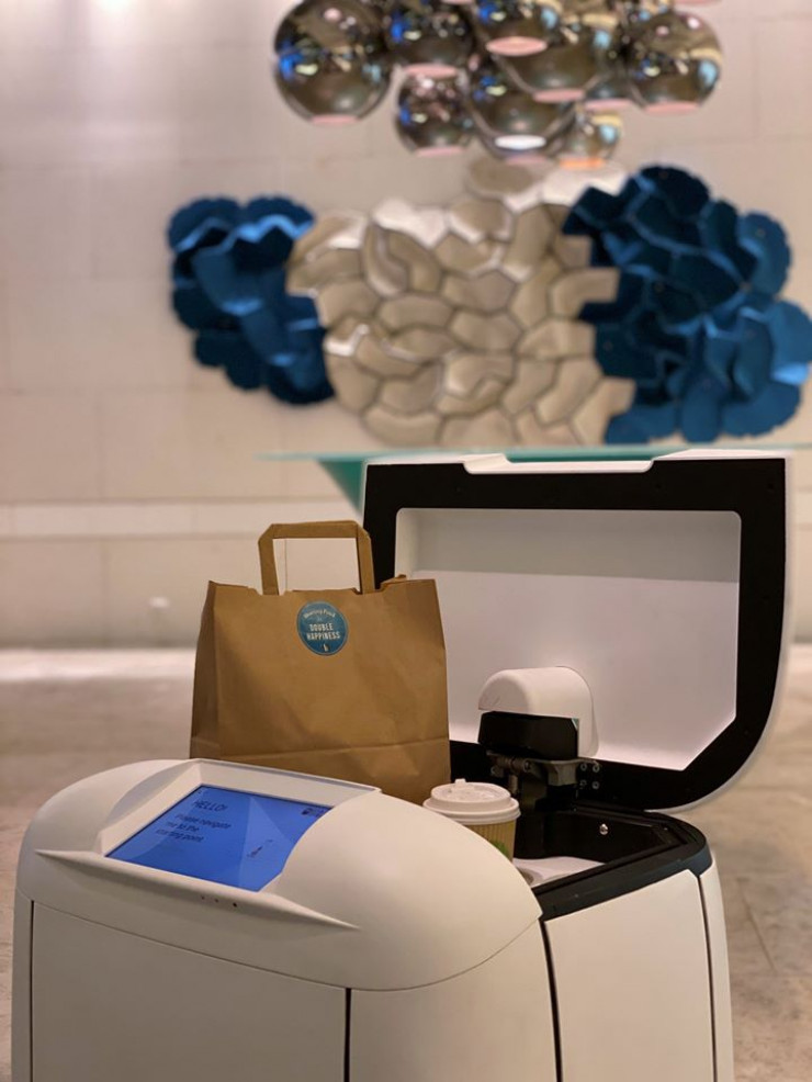 Genie - первый робот на обслуживании 432 номеров отеля. Он доставляет еду постояльцам, находящимся на карантине. В день у робота до 150 заказов. Некоторые клиенты заказывают доставку в номер, чтобы сфотографировать "умную" технику. К середине апреля компанией планируется ввести в эксплуатацию еще два таких робота.