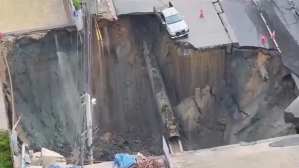 Видео с места происшествия быстро распространились в социальных сетях. На кадрах видно, как дорожное покрытие постепенно уходит под землю. Вслед ушли опоры линий электропередачи и несколько автомобилей.