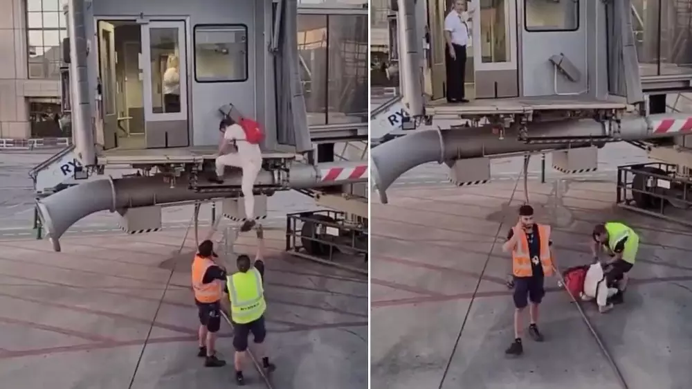 Пассажир упал с трапа самолета и стал звездой интернета после неудачной попытки подняться на борт, передает Tengritravel.kz с ссылкой на DailyMail.