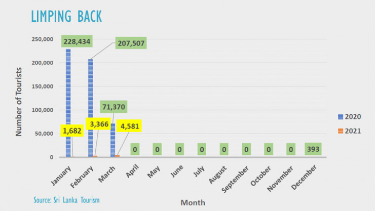 В марте 2021 года Шри-Ланку посетили 4 500 туристов. В феврале их число составило 3 366. Всего с момента открытия границ на острове побывали 9 629 иностранцев.