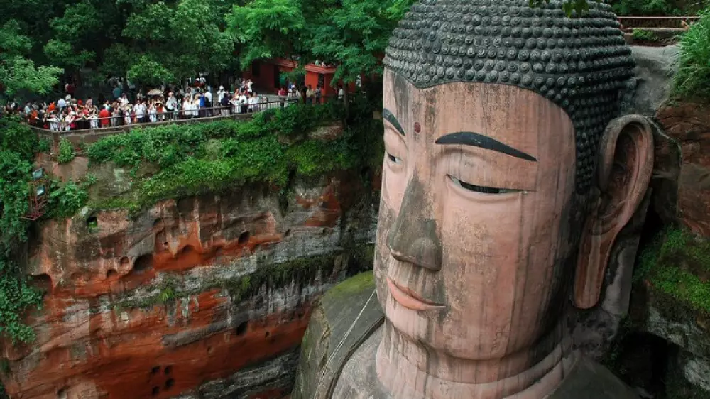 Популярная достопримечательность провинции Сычуань в Китае является cамым высоким скульптурным произведением на Земле, это статуя Будды в Лэшане. Ее высота - 70 метров. Местные жители называют ее "Будда Горы".