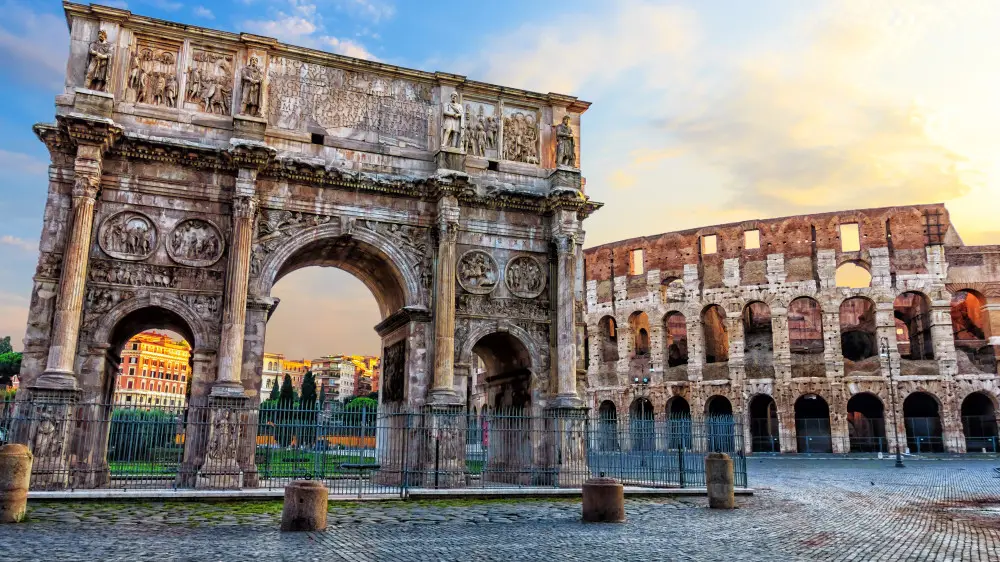 Добавим, что Триумфальная арка Константина расположена в Риме между Колизеем и Палатином. Она была построена в 315 году и посвящена победе Константина над Максенцием в битве у Мильвийского моста 312 года.