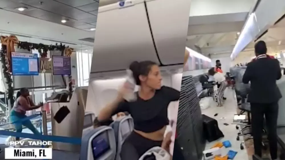 Один из инцидентов произошел во вторник, 20 декабря, в аэропорту Майами (США). Пассажирка самолета, находившаяся посреди переполненной зоны выхода на посадку, начала злиться и громко ругаться. Зайдя за стойку персонала, женщина схватила монитор компьютера и бросила его в лицо сотруднице American Airlines.