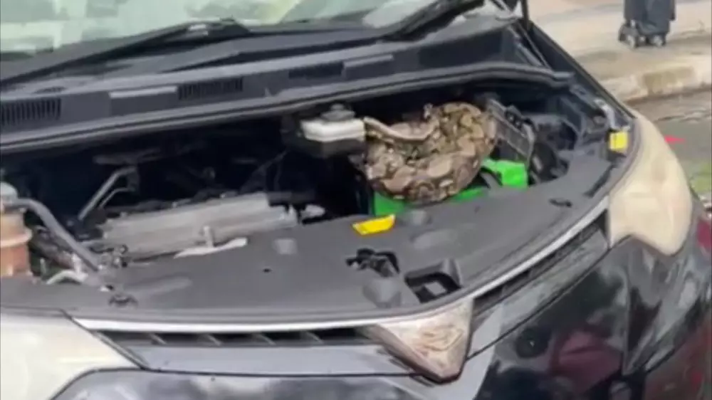 Питон, найденный внутри автомобиля во время морского парада в Сингапуре, вызвал недоумение у местных жителей, передает Tengritravel.kz со ссылкой на Must Share News.