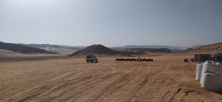 После этого бедуины угостят вас своим фирменным чаем. Далее следует пересадка на квадроциклы и часовой заезд по местности. Также вас ждет катание на верблюдах.
