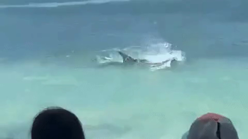 В соцсетях распространяется видео с акулой, которую засняли недалеко от берега острова Сан-Андрес. На кадрах видно, как туристы выбежали из
