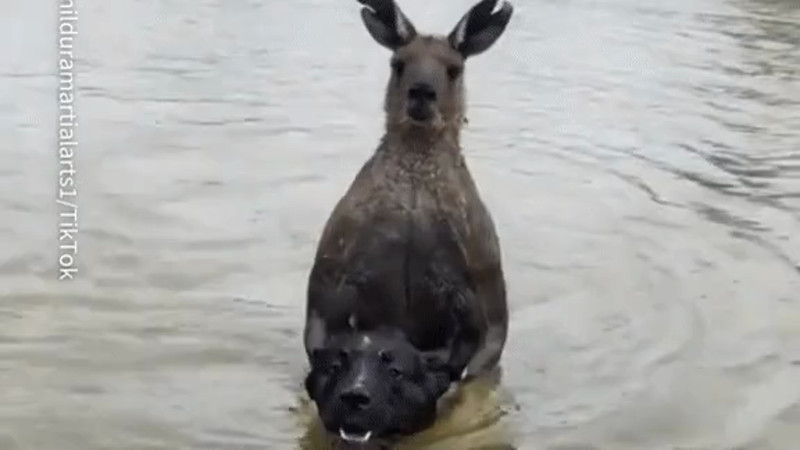 Мужчина подрался с кенгуру, который взял в заложники его собаку: видео