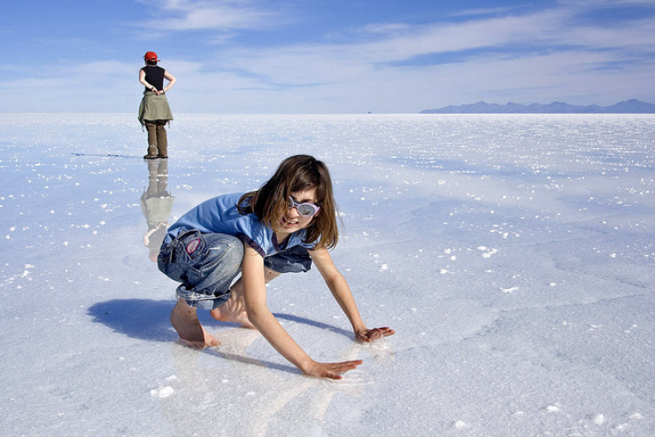 Самый большой в мире солончак находится в боливийских Андах. Высохшее доисторическое озеро Салар-де-Уюни занимает площадь около 11 тысяч квадратных километров и является местом обитания розовых фламинго. Если хотите "пройтись по облакам", приходите во время дождя.