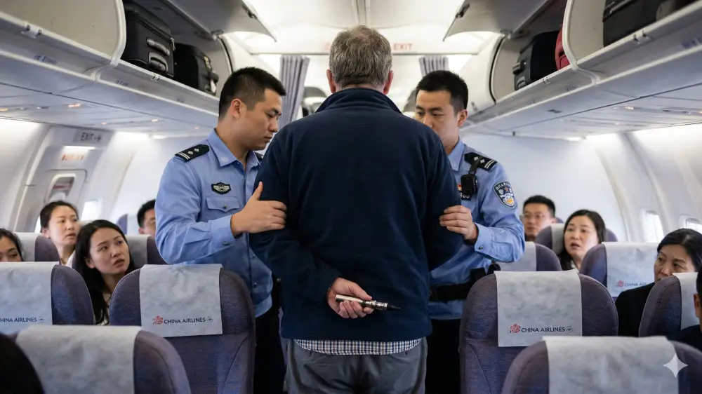 По прибытии в аэропорт бортпроводники China Airlines сообщили в авиационную полицию о неподобающем поведении пассажира, и его задержали.