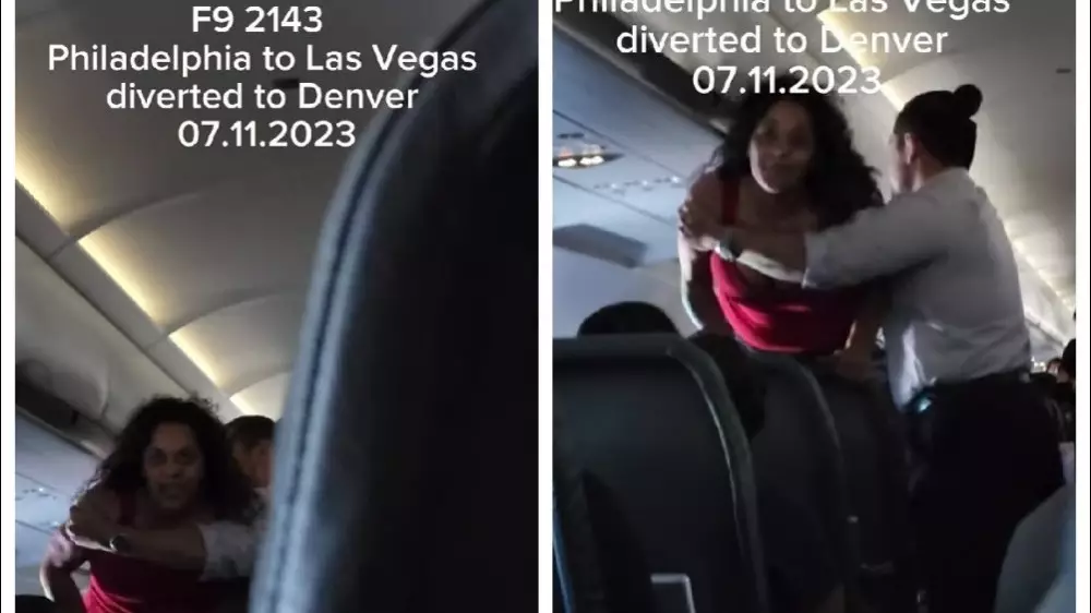 Две разгневанные пассажирки самолета Frontier Airlines устроили дебош, сорвали рейс и попали на видео. Кадры эмоциональной стычки опубликовало издание 8 News Now, передает Tengritravel.kz.