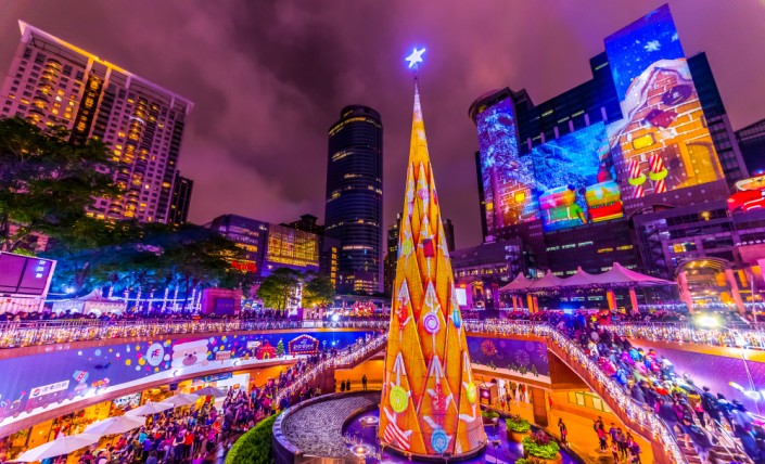 Тайбэй, Тайвань. Невероятно красивое зрелище в декабре могут наблюдать жители и гости города Тайбэй. Каждый день после заката здесь начинается удивительное световое шоу. Высота рождественского светодиодного дерева - без малого 36 метров. Рядом с елкой находятся базарчики и детские аттракционы. Там звучат песни, проводятся световые шоу, и все это превращается в особый рождественский фестиваль. Елку в Тайбэе зажигают 16 ноября, и она стоит на площади до 1 января.