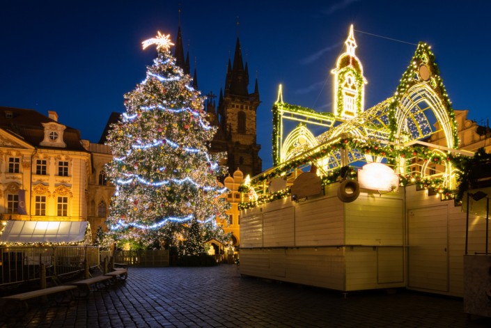 Прага, Чехия. В самые первые выходные декабря на Староместской площади зажгли огни на главной рождественской ели. Главную елку чешской столицы традиционно выбирают всей страной. Деревни соревнуются за право привезти в Прагу самую красивую елку, дизайнеры участвуют в конкурсе на право ее оформить. В этом году высота ели составляет 22 метра, и она украшена 36 тысячами лампочек, сотней гигантских пряничных человечков и 30 гирляндами.