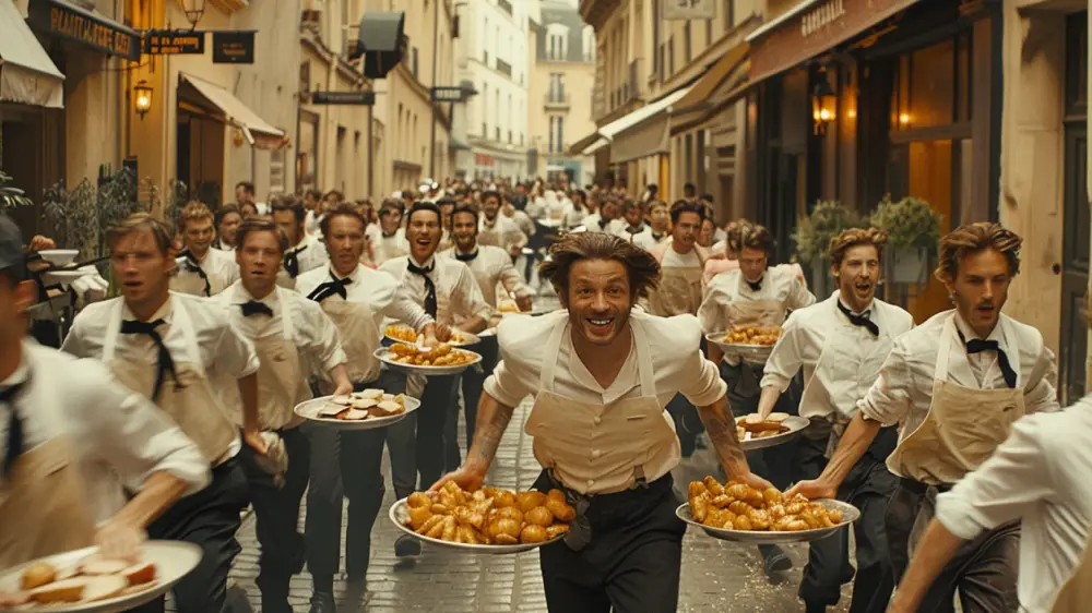 По сообщению СМИ, 200 официантов городских кафе вышли в центр Парижа в классической черно-белой форме. Они стартовали у мэрии, далее направились в Помпиду и прошли узкие улицы Маре. Это первый подобный марафон за 13 лет, в течение которых он не проводился в связи с отсутствием финансирования.