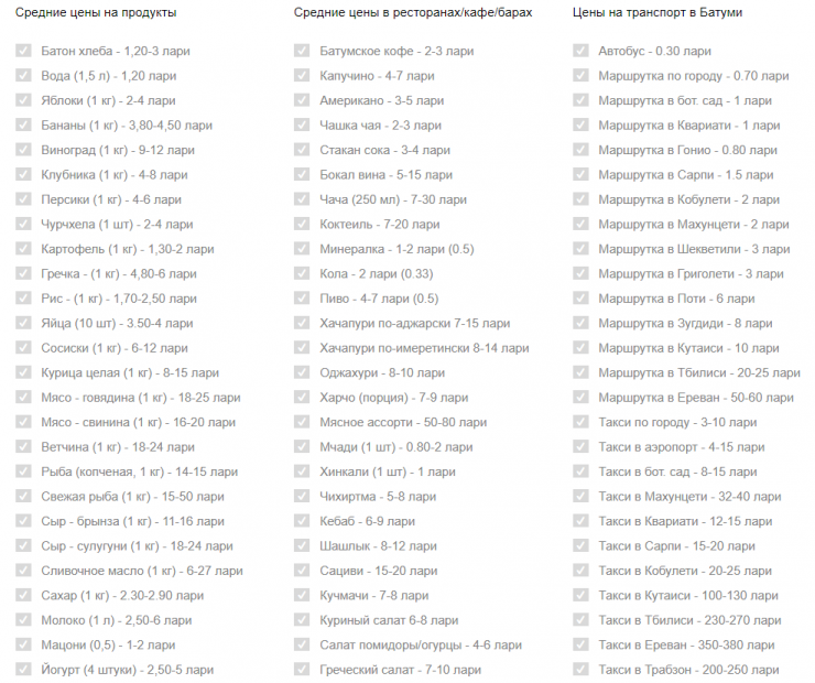 Цены в Батуми на еду, транспорт, кафе и рестораны в 2022 году