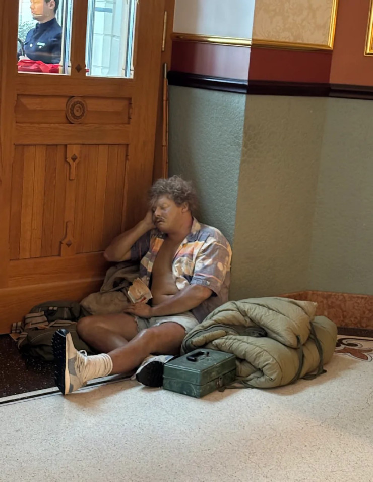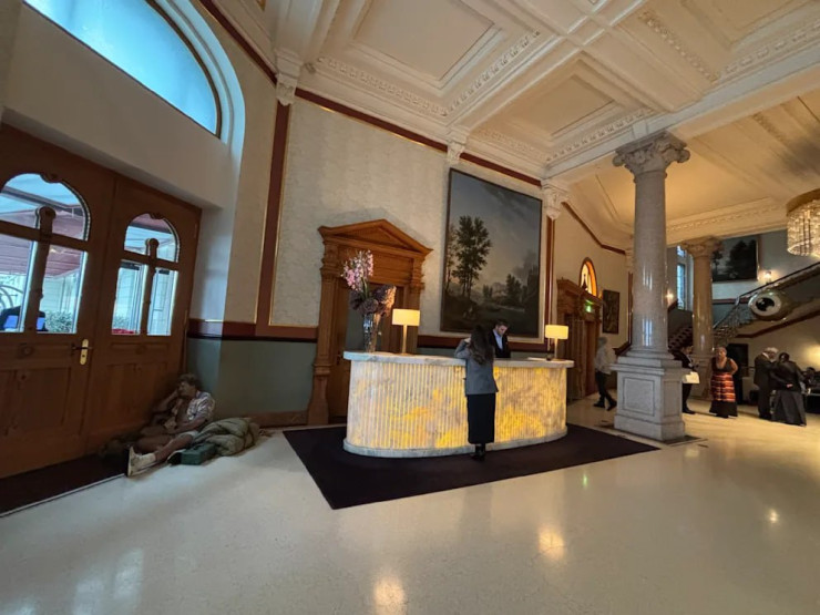 Пятизвёздочная гостиница Dolder Grand находится на холме в центре Цюриха. Одна ночь здесь стоит около 1000 евро. Журналист Bild Тобиас Рендер обратил внимание, что в холле рядом с ресепшен установили фигуру спящего бродяги, поражающую правдоподобием, передает Tengri Travel.
