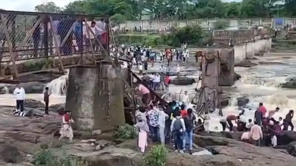 Сообщается, что инцидент произошел в минувшее воскресенье. Мост обрушился через реку в индийском городе Пуна.