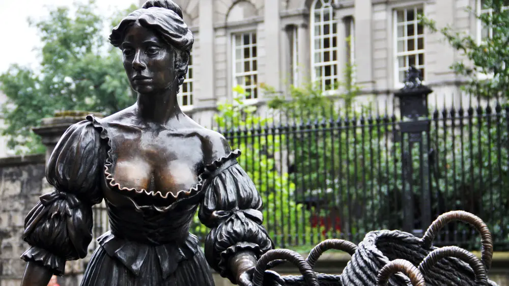 Молли Мэлоун - героиня популярной ирландской баллады Cockles and Mussels. Согласно песне, она была молодой продавщицей морепродуктов, трагически умершей от лихорадки. Хотя исторических подтверждений ее существования нет, Молли стала народной любимицей и символом Дублина - такой же частью города, как Гиннесс и Лиффи.