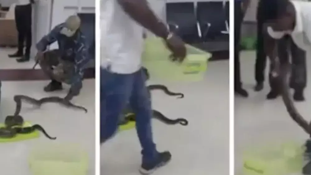 Пресс-служба аэропорта индийского города Ченнаи показала, как сотрудники задержали женщину, которая хотела провезти десятки змей в своем багаже, передает Tengritravel.kz.